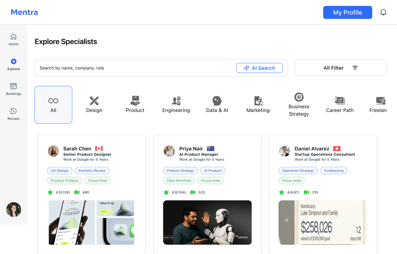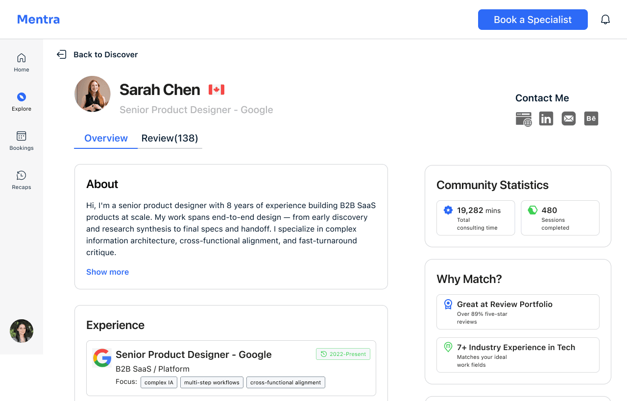 The design challenge: Professionals with urgent, specific questions face a frustrating gap in the market. Build a marketplace platform where professionals can book 15–60 minute paid consultations with specialists and walk away with actionable next steps.
