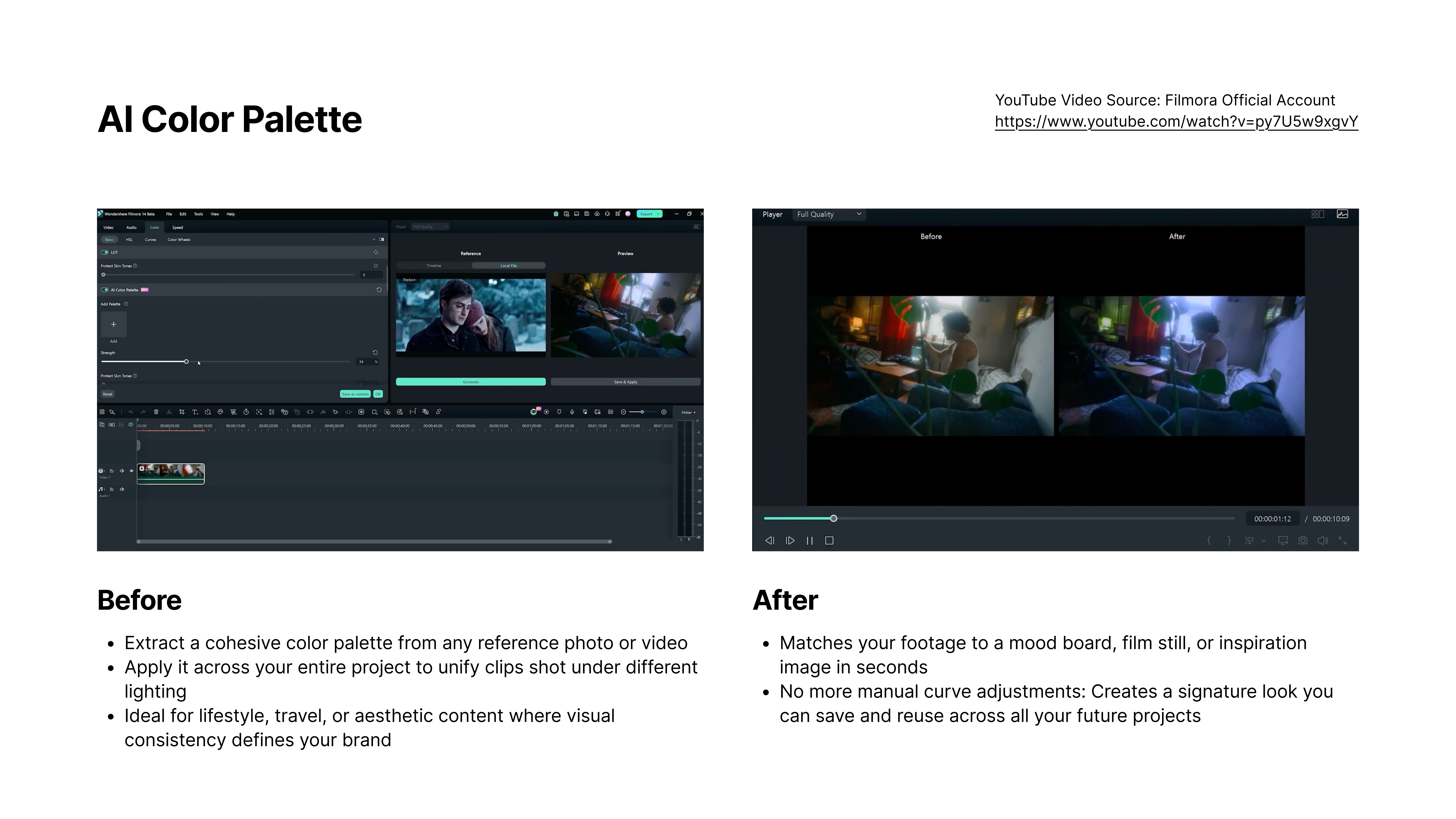 AI Color Palette: generates cohesive color schemes from reference images to match a creator's visual aesthetic